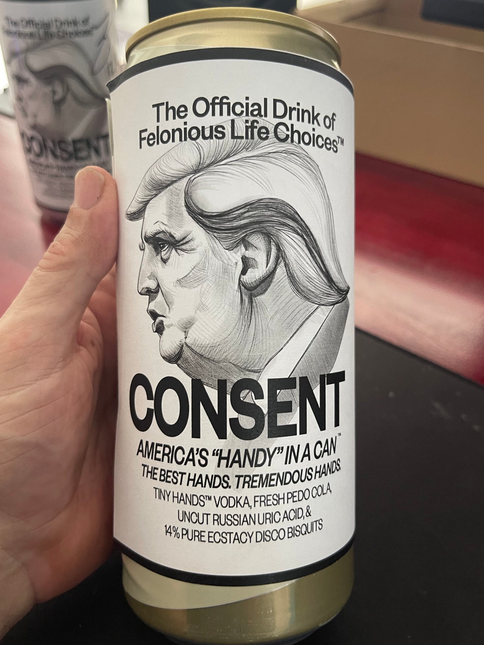 A brushed aluminum Consentivus Can, physically stamped: LIMITED GOVERNMENT EDITION — TRIAL PROOF